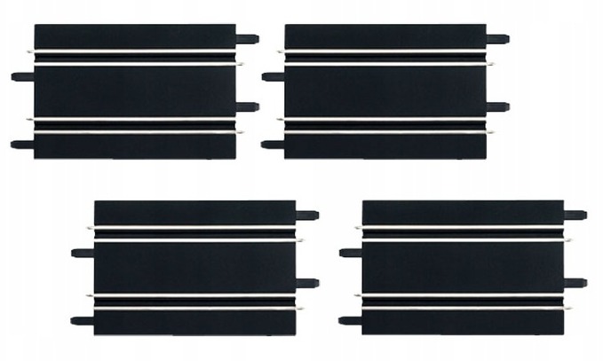 Zestaw czterech elementów prostych do torów Carrera GO! to niezbędny element do precyzyjnego planowania i rozbudowy tras w systemach Carrera GO, GO Plus i Digital 143.