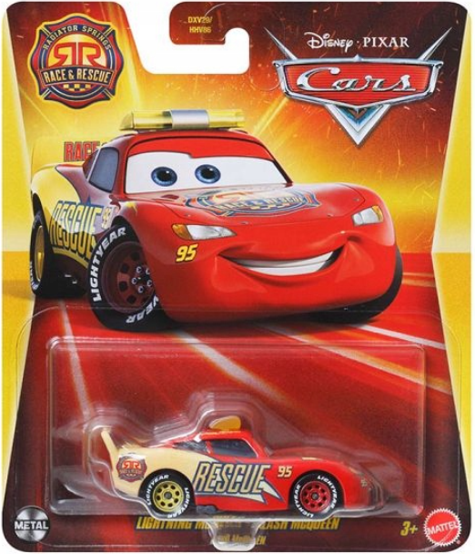 W opakowaniu znajdziesz żółto-czerwonego Zygzaka w wersji "Race & Rescue". Jako kapitan straży pożarnej McQuenn ma na masce, boku oraz tylnym spojlerze logo grupy ratunkowej. Na dachu zaś umieszczony jest żółty panel imitujący "koguta".