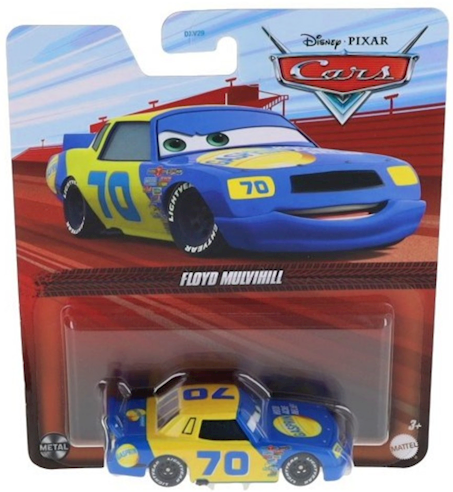 W tym zestawie znajdziemy kolejnego rywala Zyzgzaka McQueena, którym jest Floyd Mulvihill. Niebiesko-żółte autko które brało udział w wyścigach Piston Cup Racing Series dla Gasprin z numerem 70, stąd posiada on na sobie naklejki wyścigowe.