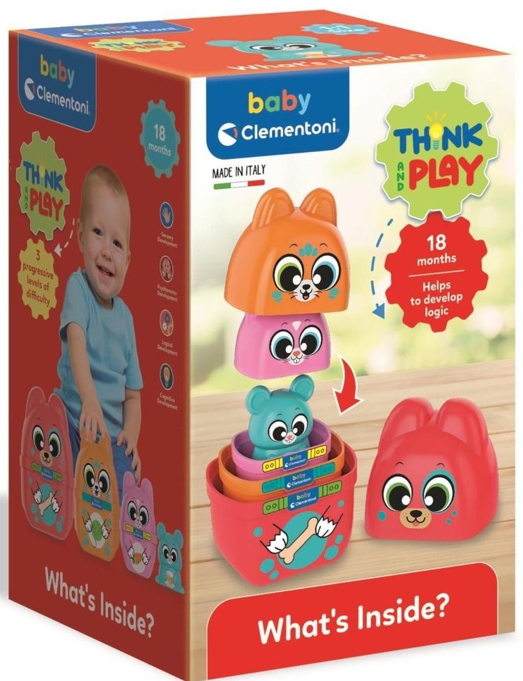 Ta zabawka w stylu matrioszki rozbudzi ciekawość każdego maluszka! Co jest w środku? Na to pytanie dziecko pozna odpowiedź bawiąc się i odkrywając kolejne elementy zestawu z serii Clementoni BABY.