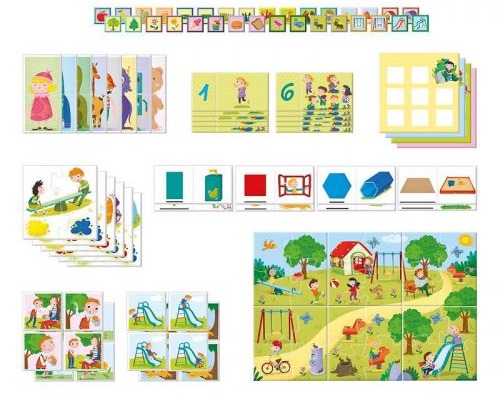 Ten zestaw to zbiór gier edukacyjnych, które mogą pomóc dzieciom w nauce podstawowych pojęć przyswajalnych na etapie przedszkolnym, takich jak: kształty, kolory i liczby, a także w skojarzeniach logicznych i w poznawaniu świata.