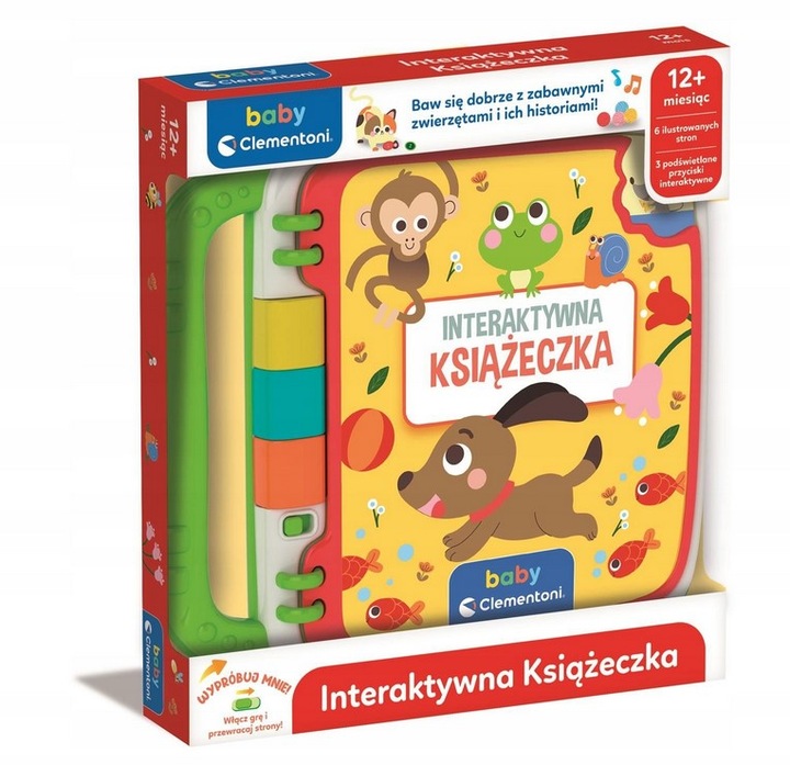 Książeczka sprzyja rozwijaniu spostrzegawczości, koncentracji i wyobraźni, a jednocześnie oswaja dziecko z pierwszymi formami interakcji edukacyjnej. Produkt ma sześć barwnych stron z ilustracjami i trzy przyciski interaktywne, które wzbogacają zabawę o dodatkowe dźwięki i komunikaty. Zabawka została zaprojektowana z myślą o dzieciach powyżej 12. miesiąca życia. To świetny wybór na codzienną zabawę, który może towarzyszyć maluchowi w domu i w podróży, zapewniając mu radosne i rozwijające chwile.