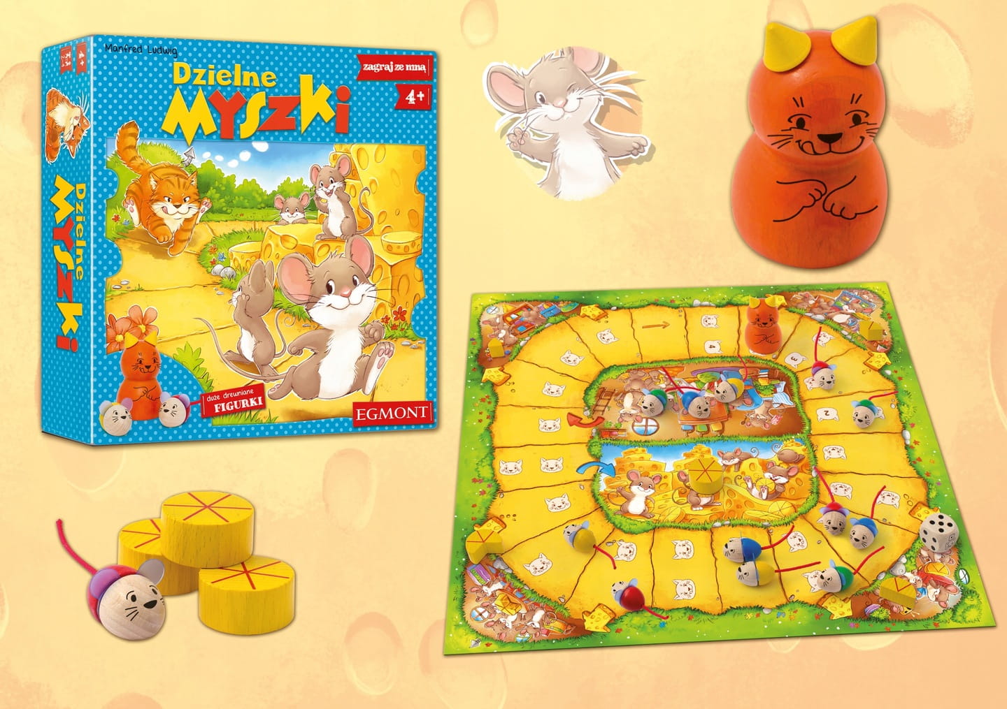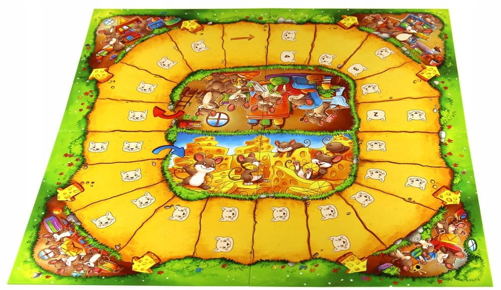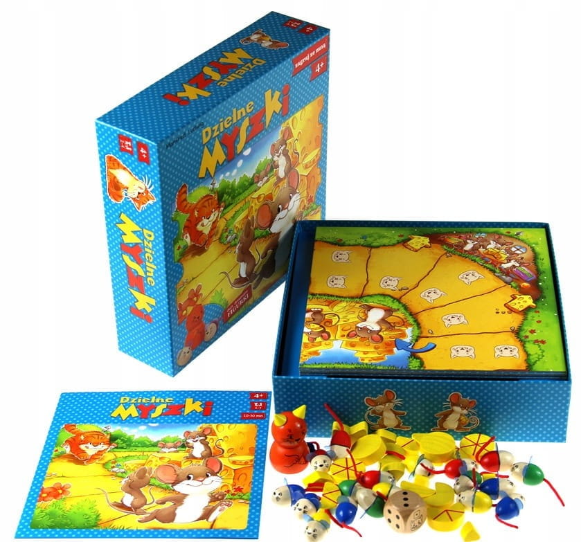 Zawartość opakowania: plansza, figurka kota, 20 figurek myszy, 20 kawałków sera.