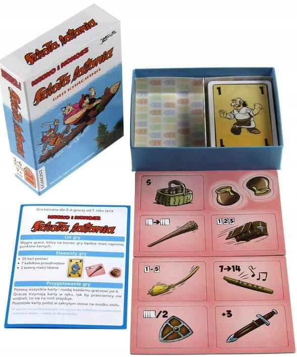 Zasady karcianki są niezwykle proste. Zagraj karty, wykorzystaj siłę swoich postaci i pokonaj rywali! Wygra gracz, który na koniec gry będzie mieć najmniej punktów karnych. Gra ma dwa warianty zasad, dzięki czemu świetnie sprawdzi się zarówno w gronie 7-latkow, jak i starszych graczy. „Szkoła latania” w wersji karcianej dostarczy wiele frajdy nie tylko fanom komiksu.
