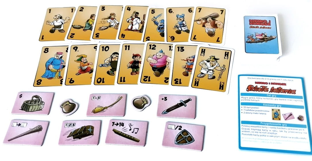 Komiksowy świat dzielnych wojowników broniących Mirmiłowa trafił także na półkę z grami! Autor wielu familijnych gier planszowych - Reiner Knizia przeniósł na karty bohaterów najpopularniejszej serii komiksów - "Szkoły latania".