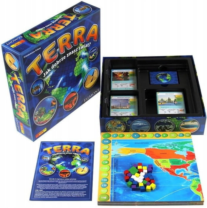 Nowe wydanie gry będącej światowym bestsellerem. "Terra" jest bogato ilustrowaną, kolorową podróżą przez świat. Nowa szata graficzna to nie wszystko! Zaktualizowane zostały także zadania i pytania dla Graczy.