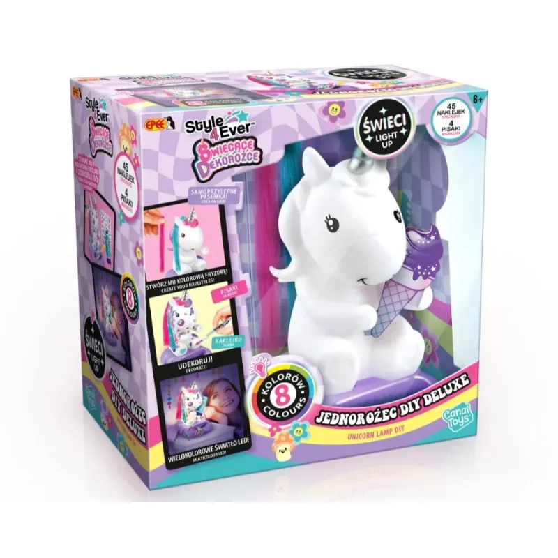 Sympatyczny biały zwierzak ze świata fantazji jest nie tylko tłem do artystycznych szaleństw, ale także pełni funkcję lampki nocnej. Możesz zatem wybrać wygląd swojej figurki, dekorując ją na wiele sposobów oraz dobrać odpowiednie do nastroju światło. Lampka ma aż 8 kolorów do wyboru!