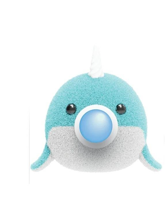 Sympatyczny niebiesko-biały Popik jest malutkim narwalem. Ma miękkie futerko, a na środku niebieską piłeczkę, którą chętnie się z Tobą pobawi. Ściśnij Popika w odpowiednim miejscu, a wtedy wyda zabawny dźwięk "pop!" i wystrzeli piłeczkę.