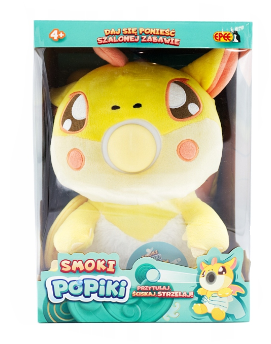 Seria SMOKI, to trzy kolorowe maskotki, a każda z nich trzyma w pysku kulkę. Po naciśnięciu Popika w odpowiednim miejscu, zwierzątko wydaje zabawny dźwięk „pop” i strzela małą piłeczką, co sprawia, że zabawa staje się dynamiczna i pełna radości.