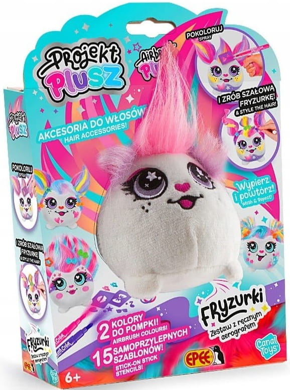 Kolekcja "Fryzurki" to urocze okrągłe maskotki z bujnymi czuprynami i akcesoriami do dekoracji. Zaplataj warkoczyki, koloruj według szablonów lub własnych pomysłów, dodawaj spinki i koraliki, a kiedy do głowy wpadnie nowy pomysł - wrzuć pluszaka do prania, wysusz i zacznij zabawę od początku!