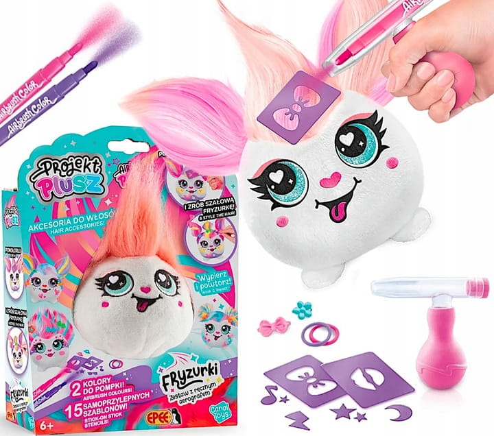 Kolekcja "Fryzurki" to urocze okrągłe maskotki z bujnymi czuprynami i akcesoriami do dekoracji. Zaplataj warkoczyki, koloruj według szablonów lub własnych pomysłów, dodawaj spinki i koraliki, a kiedy do głowy wpadnie nowy pomysł - wrzuć pluszaka do prania, wysusz i zacznij zabawę od początku!