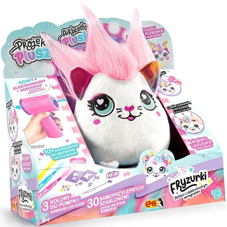 Kolekcja "Fryzurki" to urocze okrągłe maskotki z bujnymi czuprynami i akcesoriami do dekoracji. Zaplataj warkoczyki, koloruj według szablonów lub własnych pomysłów, dodawaj spinki i koraliki, a kiedy do głowy wpadnie nowy pomysł - wrzuć pluszaka do prania, wysusz i zacznij zabawę od początku!