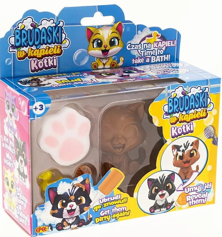 Seria "Brudaski w kąpieli" od EPEE to małe urocze kotki, które można brudzić dołączonym specjalnym błotkiem.