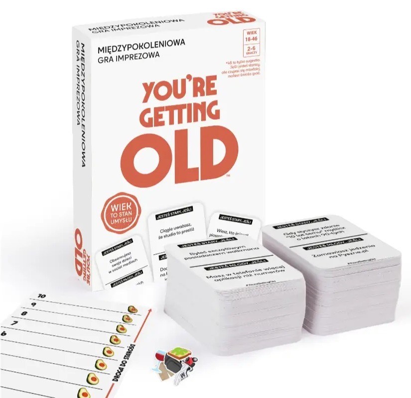 Czy kiedykolwiek zdarzyło Ci się przeglądać listę „TOP 100” na Spotify i pomyśleć: „Kim, do diabła, są ci wszyscy ludzie?” albo stwierdzić, że „20:00 to za późno, żeby odpalać film”? Jeśli tak, to załóż te niemodne rurki, popraw przedziałek, zaopatrz się w jakieś ekstra kraftowe napoje i zbierz przyjaciół, czas usiąść do You’re Getting Old, zabawnej gry imprezowej, która udowadnia, że wiek to tylko liczba… choć czasem wyższa, niż byśmy chcieli.