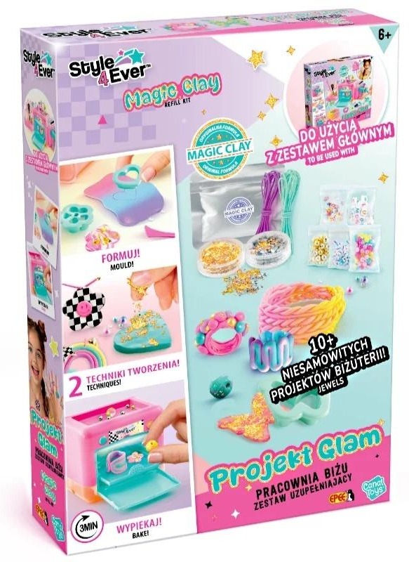 Rozwiń swoją kolekcję biżuterii z zestawem uzupełniającym do Pracowni Biżu. Dzięki specjalnej masie plastycznej stworzysz modne pierścionki, bransoletki i zawieszki dokładnie takie, jakie sobie wymarzysz. Wybierz kolory, połącz je, uformuj w wybrane kształty, a potem wypiecz w kreatorze i noś!