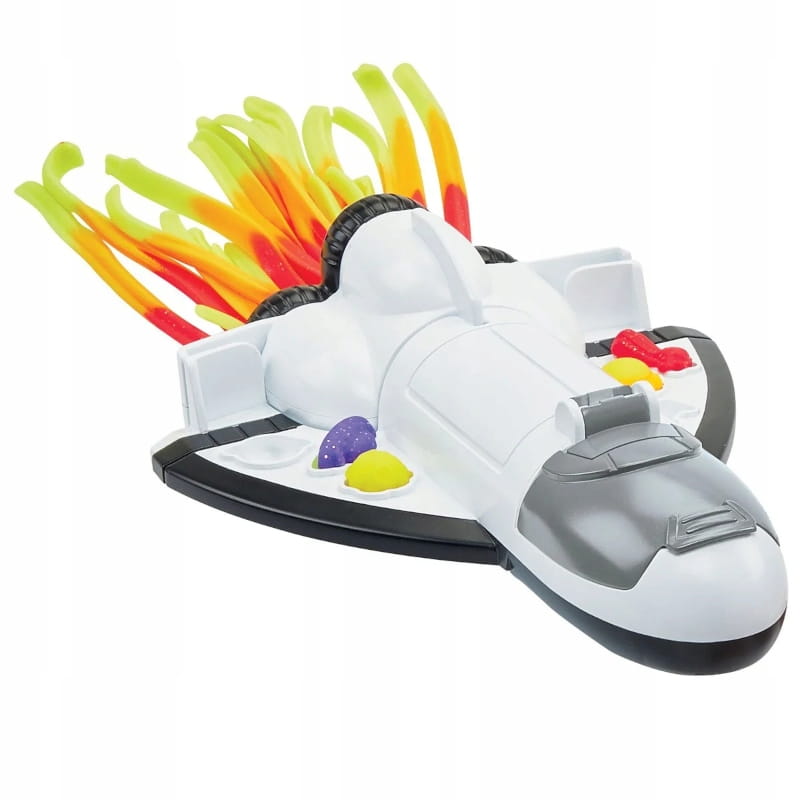 Wnętrze otwieranej rakiety pozwala na umieszczenie w niej ciastoliny, a następnie zamknięcie jej, aby stworzyć efekt startującej rakiety.
