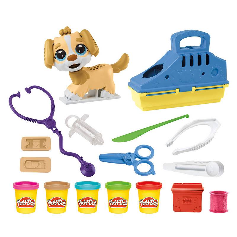 Czas na badania kontrolne tego szczeniaczka! Mali weterynarze mogą zająć się tym uroczym pieskiem. Sprawdź, jak możesz się z nim bawić - spraw, by piesek wystawił język, pielęgnuj go i ułóż jego sierść na trzy różne sposoby. W zestawie znajduje się uroczy transporter z miejscem do przechowywania - możesz umieścić w nim szczeniaczka, a potem wyjąć go, kiedy tylko chcesz! W transporterze z łatwością przechowasz wszystkie potrzebne akcesoria, takie jak nożyczki czy stetoskop - jest ich całe mnóstwo! Play-Doh Wizyta u weterynarza to doskonały zestaw na prezent - jest tak wiele możliwości kreatywnej zabawy, gdy dzieciaki przeistaczają się w małych weterynarzy!