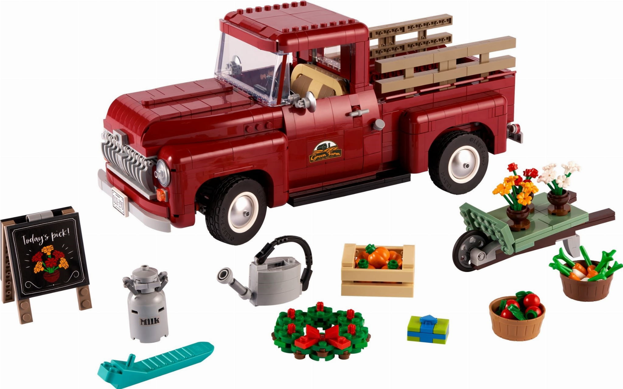 Trudno o lepszą ucieczkę od współczesności! Zbuduj pickupa LEGO® i wybierz się w podróż w lata 50. ubiegłego wieku. Ten realistyczny model klasycznej półciężarówki ma charakterystyczne, zaokrąglone linie i mnóstwo szczegółów. Przyjrzyj mu się bliżej, a odkryjesz realistyczną platformę z nadkolami, otwierane drzwi i klapę oraz zdejmowane drewniane poręcze. To auto ciężko pracuje przez cały rok, wożąc produkty z Ekologicznej Farmy. W pudełku jest wiele akcesoriów, więc możesz stworzyć ekspozycję, która ukaże różne pory roku. Jest tam taczka z kwiatami i konewka, która przywodzi na myśl wiosnę. W lecie pickup może wozić dwie drewniane skrzynki, pomidory i marchewki oraz bańkę na mleko. Jesienią może pojawić się charakterystyczna skrzynia z dyniami, a zimą ozdobisz model stroikiem i prezentem.