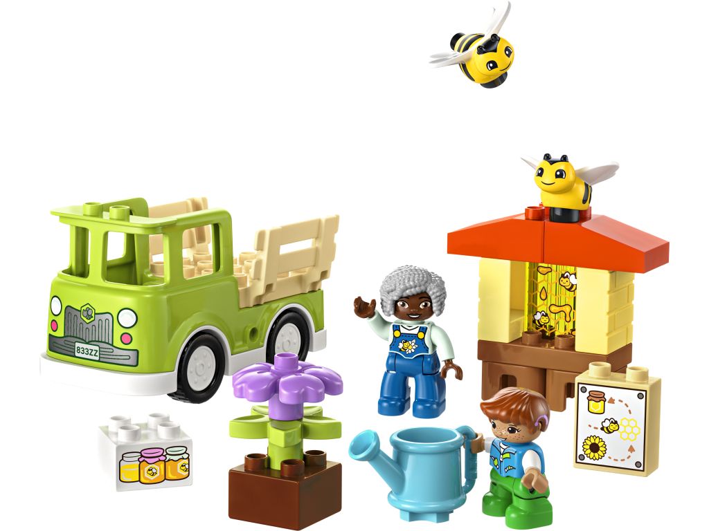 Maluchy rozwijają koordynację wzrokowo-ruchową, budując łodygi kwiatków, które dzięki temu rosną. Dzieci czeka wiele godzin zabawy w odgrywanie ról, kiedy będą sobie wyobrażać pszczółki zbierające nektar, a następnie wracające do ula, aby wyprodukować miód. W zestawie są też dwie figurki LEGO DUPLO. Przedszkolaki pomagają im zebrać miód, załadować go na zabawkową furgonetkę i zawieźć na rynek.