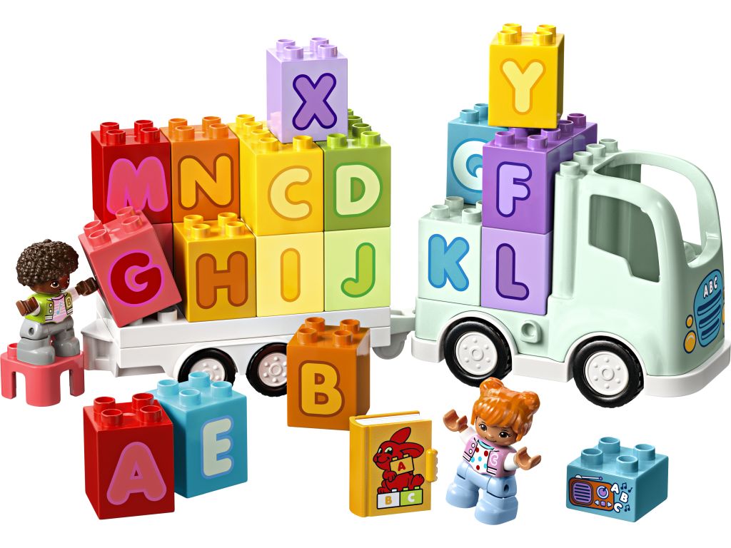 - Zabawka, która uczy małe dzieci liter — wsiądź za kierownicę ciężarówki z zestawu dla dzieci w wieku od dwóch lat LEGO® DUPLO® Town Ciężarówka z alfabetem i ciesz się zabawą wypełnioną nauką alfabetu