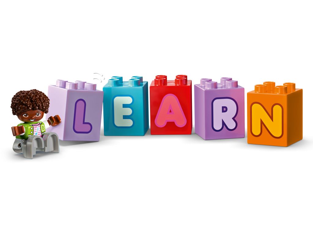 - Pomysłowe akcesoria — w zestawie jest zabawkowe radio LEGO® DUPLO® zachęcające przedszkolaki do śpiewania alfabetu oraz klocek z książką motywujący do czytania liter