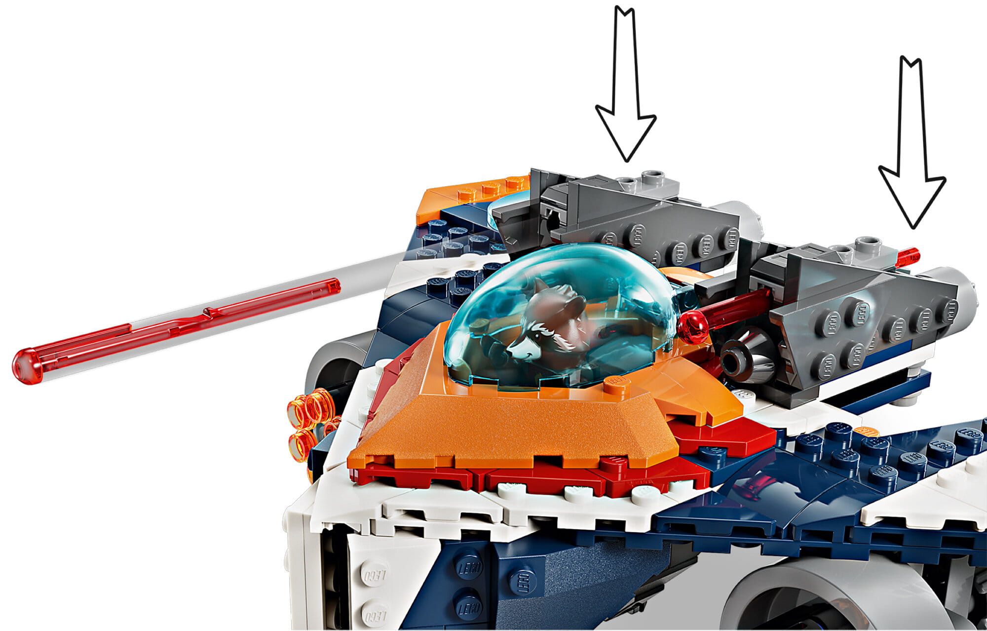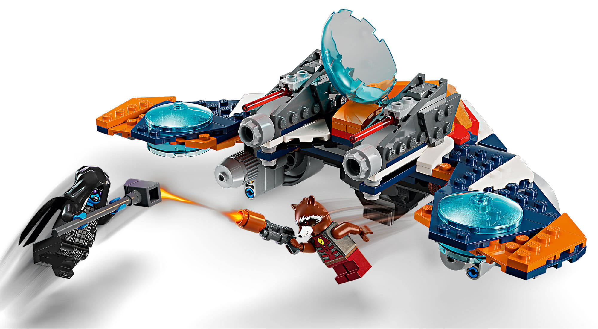 W tym zestawie, Rocket tradycyjnie uzbrojony w blaster, zasiada za sterami statku kosmicznego. Ta bojowa ptaszyna (Warbird) ma otwierany kokpit z miejscem na minifigurkę, dwie wyrzutnie na górze i megadziałko z sześcioma klockami pod każdym skrzydłem.