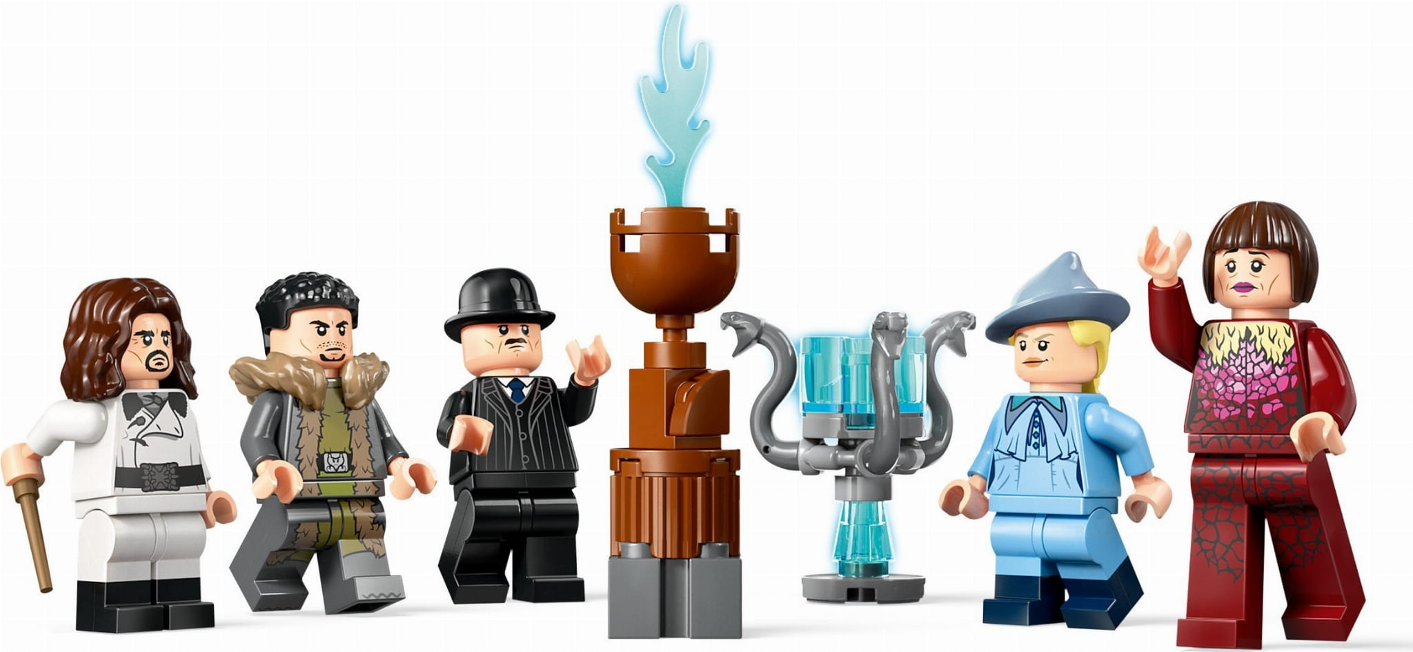 Czas przygotować się na legendarny Turniej Trójmagiczny! Odtwórz przybycie przedstawicieli dwóch szkół czarodziejów - Durmstrangu i Beauxbatons budując ich charakterystyczne środki transportu. Statek Durmstrangu posiada materiałowe żagle, złote ozdoby oraz tarcze, a pod pokładem mieści się salon i sypialnie. Z kolei niebieski powóz Durmstrangu szkoły Beauxbatons, to kareta ze złotymi kołami, oknami z kratownicą, otwieranymi drzwiami i ozdobnymi latarenkami po bokach. Powóz ma miejsce na dwie figurki oraz kufer z filiżankami, a prowadzony jest przez majestatyczne magiczne zwierzę - skrzydlatego konia Abraxana.