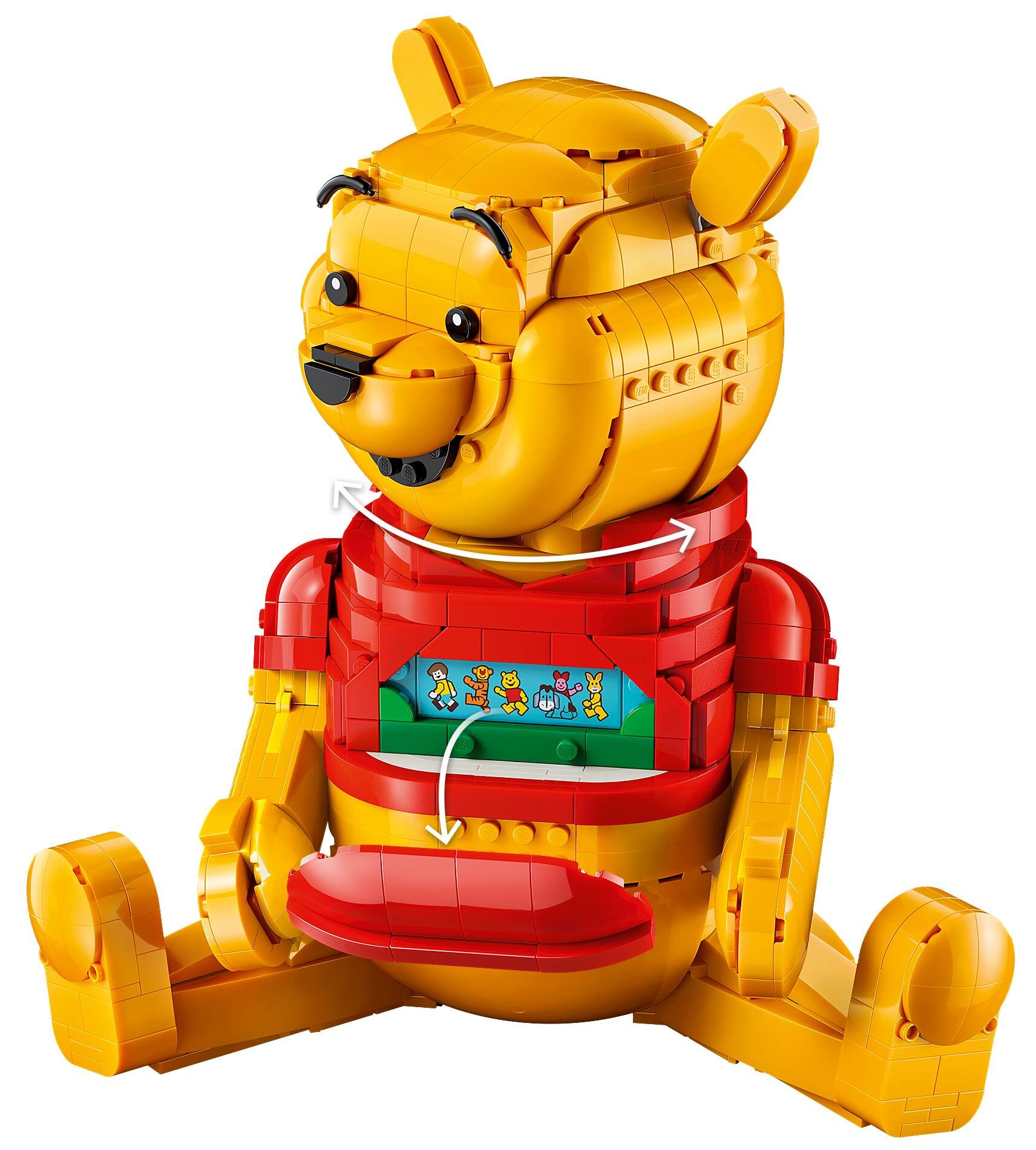 Ten pamiątkowy zestaw konstrukcyjny zawiera mnóstwo rozpoznawalnych szczegółów i stanowi zabawną dekorację domu. Zawiera klasyczną postać Kubusia Puchatka z klocków, z ruchomą głową, uszami, rękami i dłońmi, a także słoik miodu do zbudowania.