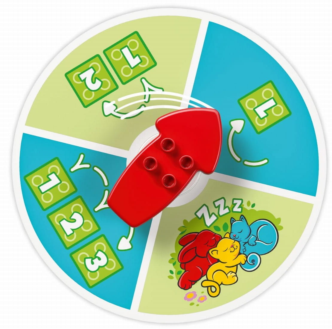 Zakręć kołem, a strzałka wskaże o ile pól należy przesunąć pionek. Kolor, na którym się zatrzymasz odpowiada klockowi jaki możesz dołożyć do swojej zamkowej budowli. Gra kończy się, gdy wszystkie postacie dotrą do zamku.