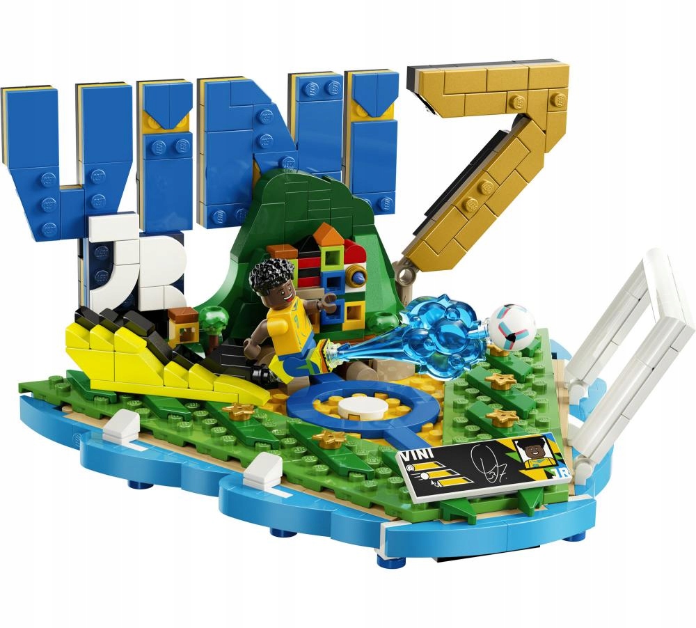 Fani piłki nożnej mogą uczcić młodą legendę sportu, składając ten kolekcjonerski model poświęcony Viniciusowi Juniorowi i odkrywając wszystkie ukryte niespodzianki. Podstawa ma kształt inicjału Viniciusa i jest utrzymana w barwach jego reprezentacji narodowej, Brazylii. Ponadto model zdobi duży numer 7, czyli jego numer na koszulce. Zestaw zawiera również kolekcjonerską tabliczkę ze statystykami piłkarza i jego autografem, a także minifigurkę Viniego Jr., która ożywia zestaw.