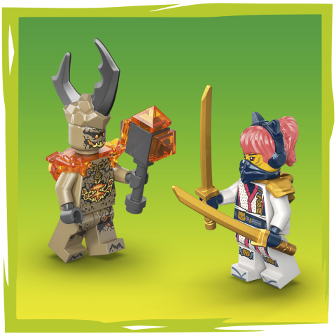 • Trzy minifigurki NINJAGO® — ta zabawka zawiera Kaia, Sorę i złowrogiego ziemnego potwora, dzięki czemu fani mogą odgrywać pełne akcji bitwy dobra ze złem