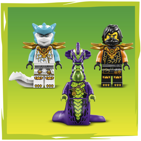 • Trzy minifigurki NINJAGO® — ten zestaw LEGO® zawiera Cole’a z młotem, Zane’a w smoczej formie z mieczem oraz kwasowego potwora z kosturem, dzięki czemu fani mogą odgrywać bitwy dobra ze złem