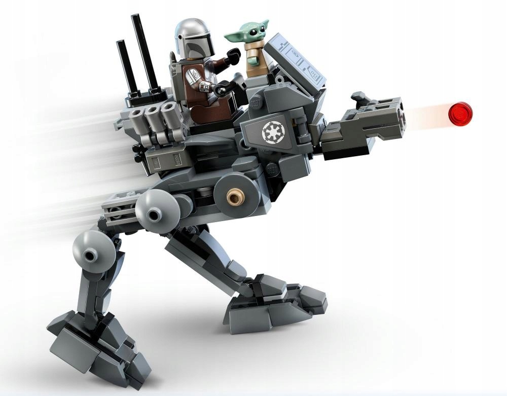 Zestaw zawiera ruchomą maszynę kroczącą AT-RT z podwójnym miotaczem klocków oraz wieżę obronną z obrotową wieżyczką i własnym podwójnym miotaczem klocków. Umieść minifigurkę LEGO kierowcy AT-RT Resztek Imperium lub Mandalorianina na siedzeniu AT-RT (usuń klocek deski rozdzielczej, aby zrobić miejsce dla figurki LEGO Grogu, która będzie podróżować razem z Mando). Otwórz wieżę obronną, aby odsłonić stojak na broń i schowek. Wyposaż Mandalorianina w plecak odrzutowy i pistolet blasterowy, a kierowcę AT-RT w blaster i odgrywaj inne fantastyczne bitwy.