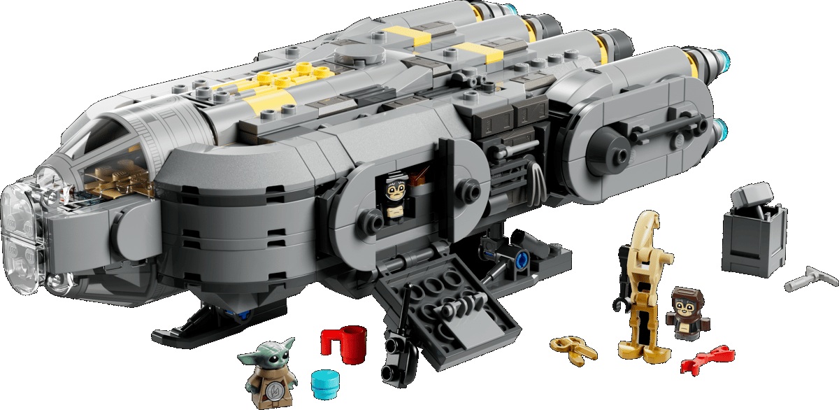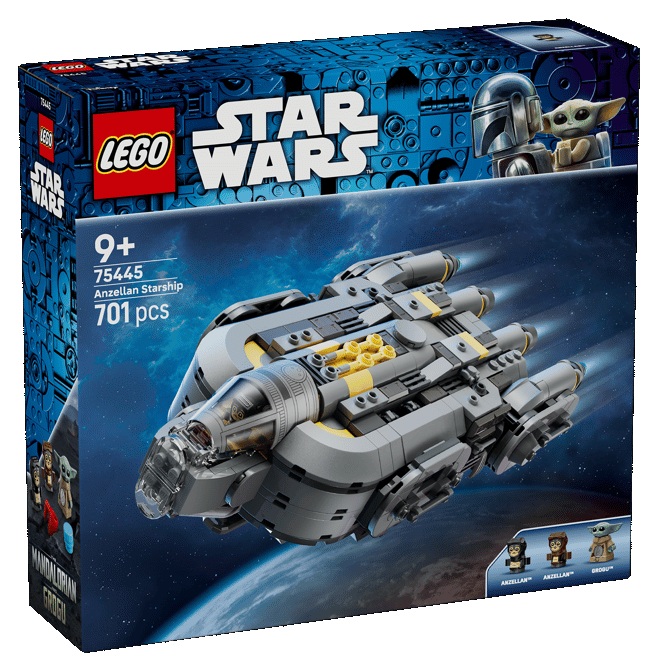 Buduj i naprawiaj droidy na pokładzie Anzellańskiego statku gwiezdnego z filmu Star Wars: The Mandalorian and Grogu. Otwórz osłonę kokpitu i zdejmij dach głównej komory, aby umieścić figurkę LEGO Grogu i dwóch uroczych Anzellanów wewnątrz tego niezwykle szczegółowego statku gwiezdnego. Wykorzystaj części droidów i narzędzia znajdujące się w warsztacie, aby zbudować droida bojowego (lub wyjmij stół warsztatowy ze statku gwiezdnego, aby bawić się nim na zewnątrz). Umieść figurki LEGO przy stole, aby posmakowały niebieskich ciasteczek, lub posadź je przy konsoli. Opuść rampę, aby opuścić pokład.