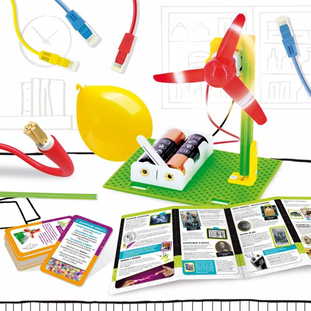 Z instrukcją oraz za pomocą elementów zawartych w opakowaniu zbudujesz samodzielnie w pełni działający wiatraczek. Dodatkowo dowiesz się jak z przedmiotów codziennego użytku oraz prostych składników dostępnych np. w kuchni, można w bezpieczny sposób bawić się nauką.