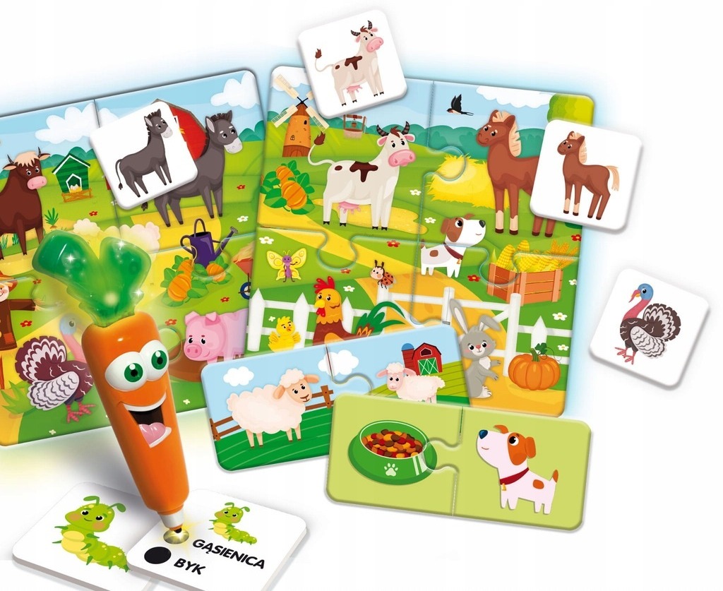 10 gier edukacyjnych do nauki i zabawy w towarzystwie mówiącej i świecącej Carotiny! Elektroniczna bohaterka wesołym okrzykiem lub smutnym westchnięciem motywuje dzieci do zabawy. Aby odpowiedzieć, wystarczy nacisnąć końcówką długopisu czarne kropki przypisane do odpowiedzi!