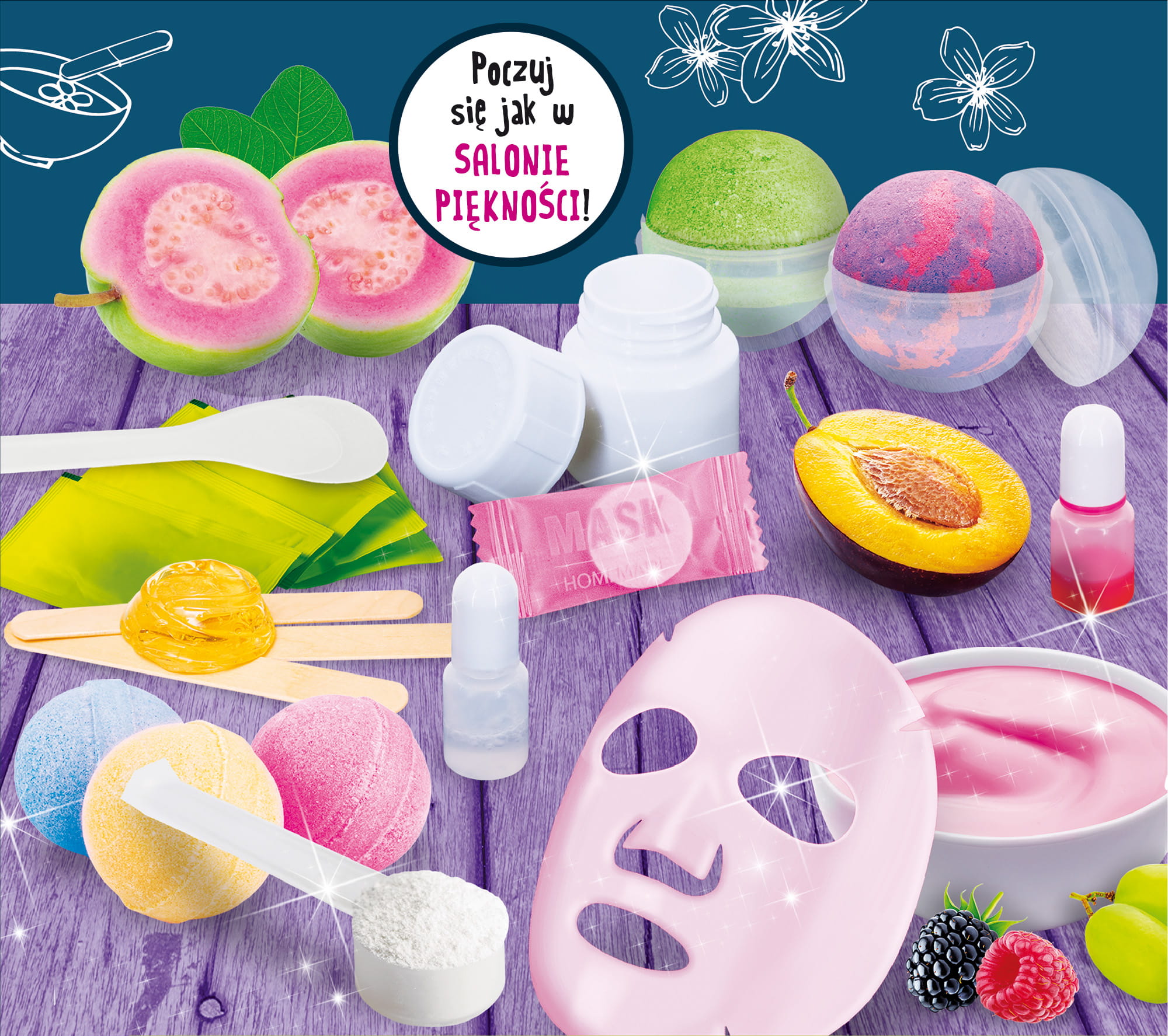 Z tym zestawem niczym w laboratorium alchemika wyczarujesz naturalne i w pełni bezpieczne maseczki do twarzy, kolorowe musujące kule do kąpieli, pachnącą sól, a także peeling i kremy do twarzy.