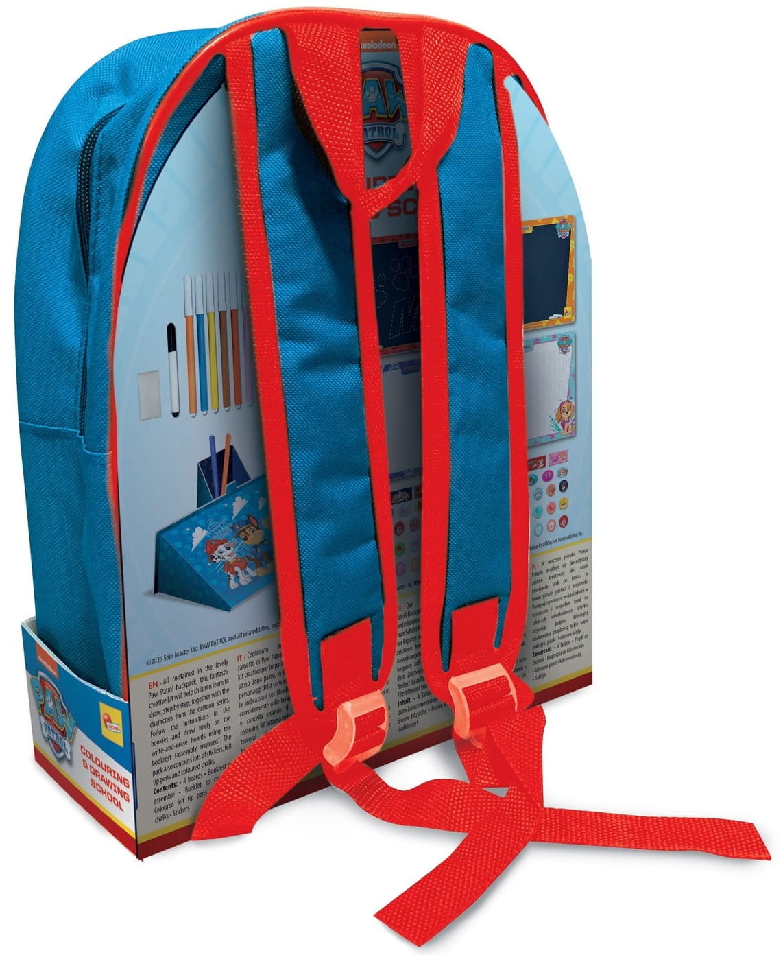 W zestawie znajdziesz bowiem plecak szkolny z wizerunkiem psich bohaterów, a także akcesoria do nauki rysowania.
