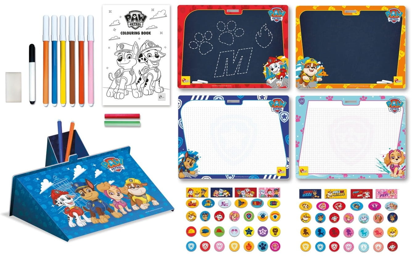 Kolorowanka, mazaki, tablice z obrazkami, naklejki i praktyczny stojak, który złożysz z kartonu - wszystko to pozwoli wyczarować piękne rysunki! Swoje dzieła jak i akcesoria zmieścisz w plecaku, dzięki czemu możesz zabrać zabawę w dowolne miejsce. Na wycieczce czy podczas szkolnej lekcji plastyki, Psi Patrol będzie zawsze dostarczał nowych kreatywnych wyzwań!