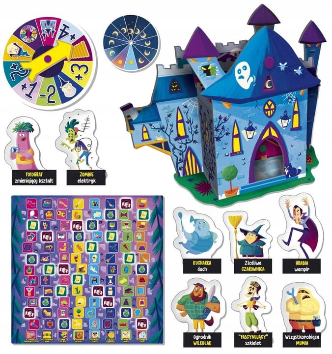 Zawartość: Zamek 3D, 8 postaci, spiner, plansza, księżycowa tarcza, instrukcja.