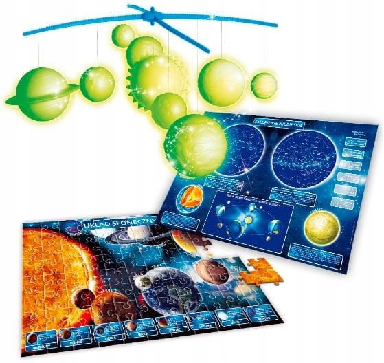 Oprócz planet, w zestawie znajdziesz także plakat z gwiazdozbiorami i puzzle z Układem Słonecznym.