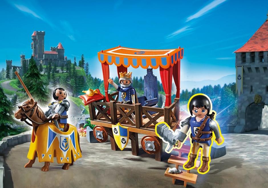 Zestaw zawiera trybun z tajną skrytką i ukrytym w niej skarbem, a zatem rycerze mają podwójne zadanie - bronić króla, a także złota przed rabusiami!