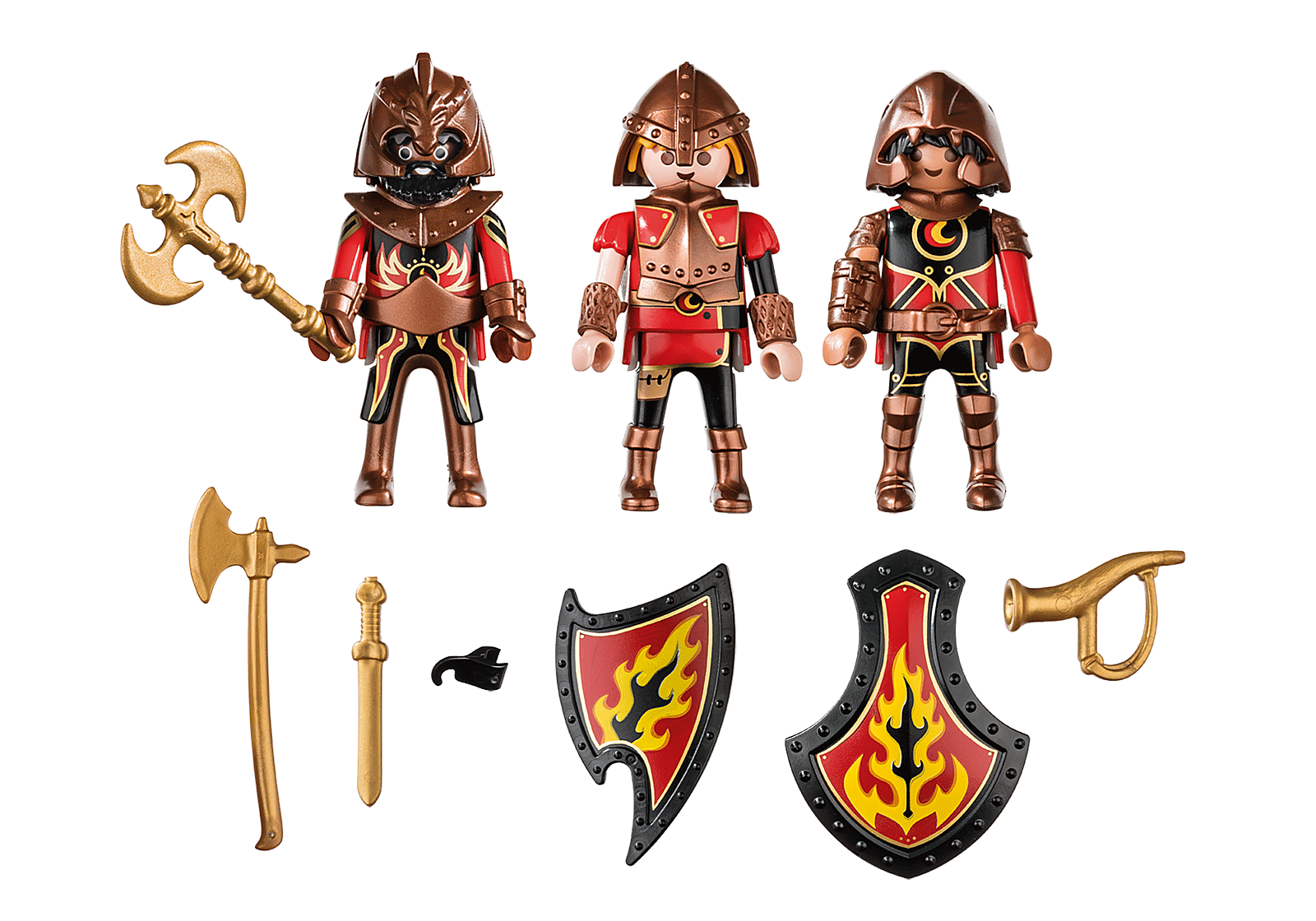 Zestaw zawiera 3 figurki wojowników Burnham wraz z akcesoriami. Jest to idealny zestaw na rozpoczęcie przygody z Playmobil oraz jako uzupełnienie do innych zestawów.