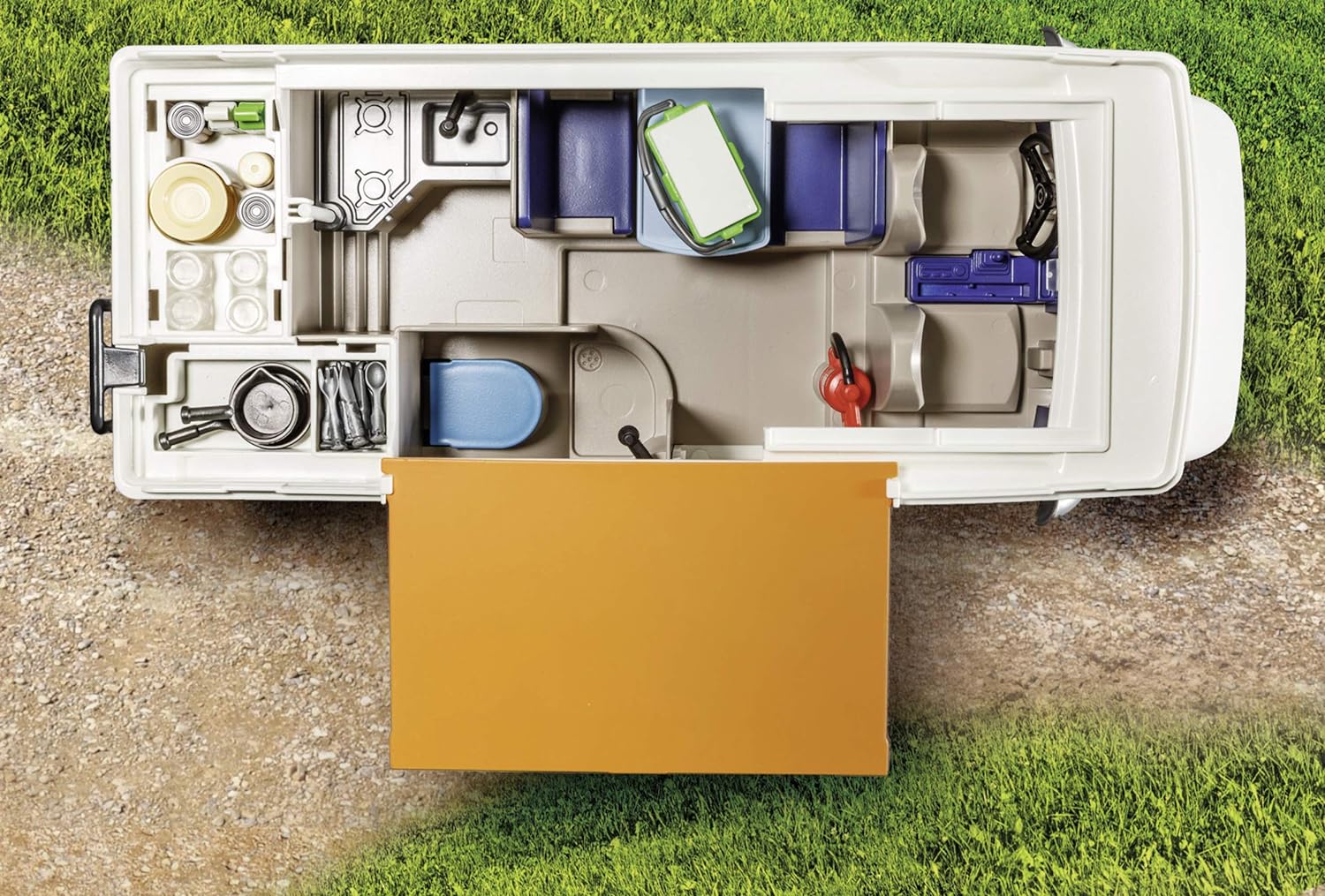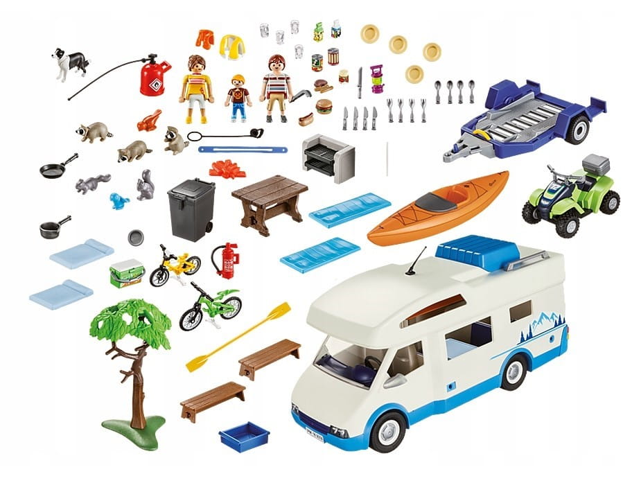 Ta rodzinka Playmobil szykuje się na wspaniałą przygodę pełną atrakcji i sportowych aktywności. Za główny środek transportu wybrali rodzinny kamper. Jego wnętrze kryje w sobie wszystkie niezbędne wygody, a meble i szafki skrojone są niemal na miarę! Zupełnie jak w prawdziwych przyczepach kempingowych.