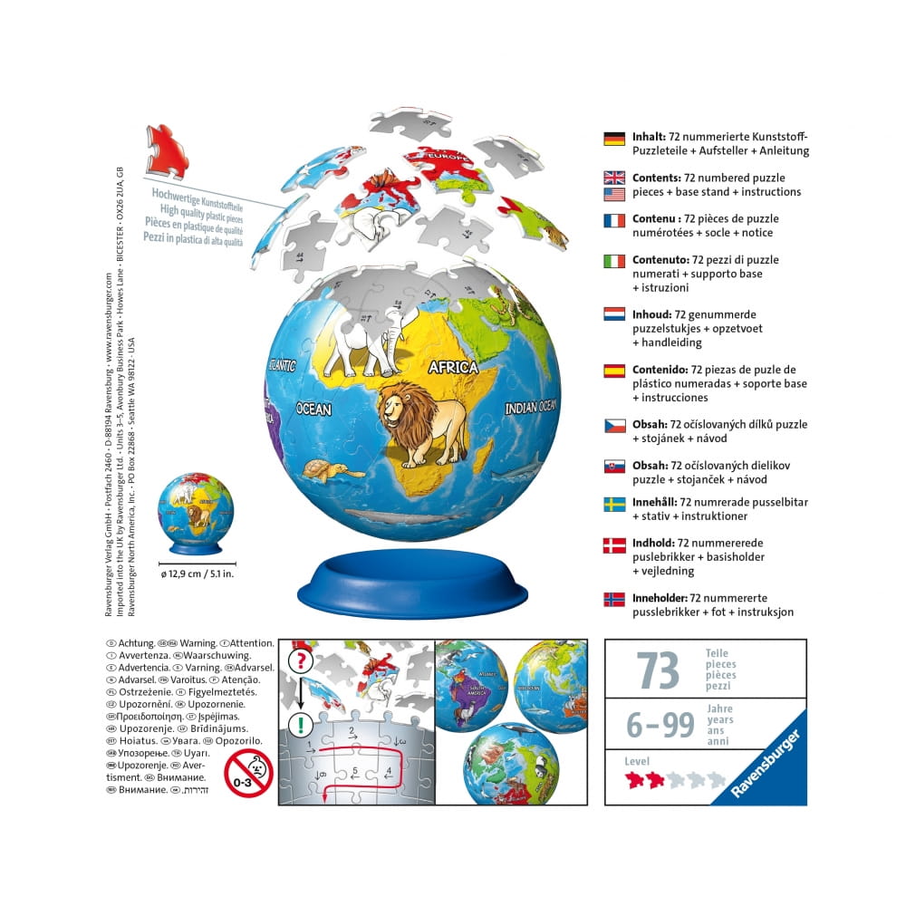 RAVENSBURGER 24751 Puzzle 3D Globus dla dzieci 72 części