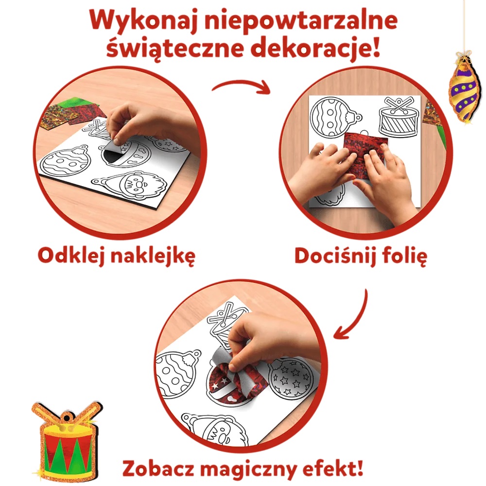 W tym opakowaniu czeka na ciebie prawdziwa magia świąt! Twórz różne dekoracje świąteczne takie jak m.in. bombki i zawieś je na choince!