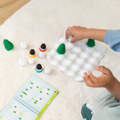 Umieść na planszy początkowe elementy zgodnie z ułożeniem z wybranego przez siebie zadania. Następnie turlaj śnieżne kule po planszy tak, aby stworzyć bałwanka. Pamiętaj jednak o właściwym zachowaniu proporcji: duża kula, potem średnia, a dopiero na końcu głowa. Czy jesteś gotowy na zimową przygodę? Podejmij wyzwanie i rozwiąż wszystkie 80 zadań.