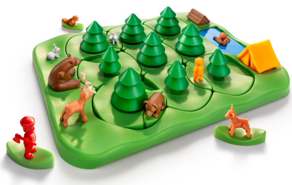 W książeczce znajduje się 80 wyzwań, a każde z nich jest trudniejsze, ponieważ stopniowo przybywa w nich zgubionych stworzeń. Zacznij rozgrywkę od odpowiedniego ułożenia drzew i postaci. Następnie przeanalizuj układ i stwórz plan działania pozwalający uratować wszystkie postaci. Na planszy znajduje się jedna pułapka. W okolicach mamy miś, jest zapadka, która zablokuje dalszą wędrówkę po lesie!