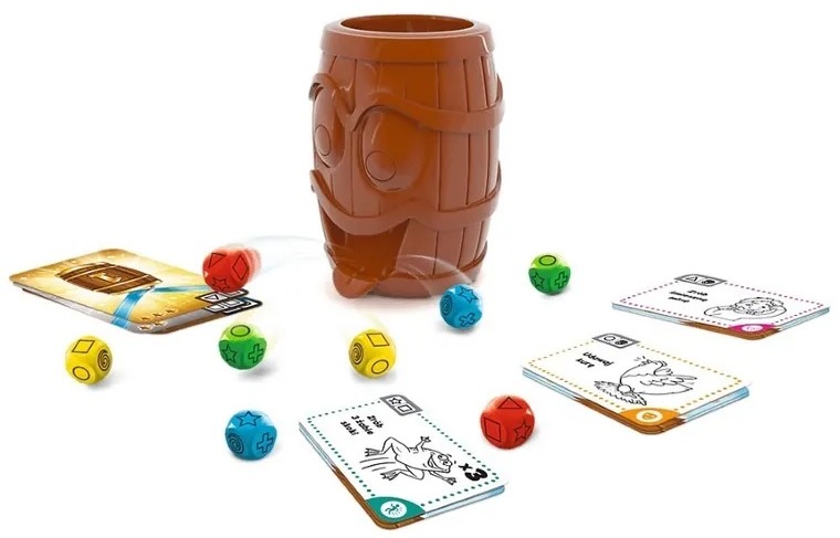 Tutaj nie musisz czekać na swoją kolej. W Beczkę Śmiechu wszyscy grają równocześnie! Wrzuć kości do beczki i jak najszybciej wykonaj wylosowane zadanie!