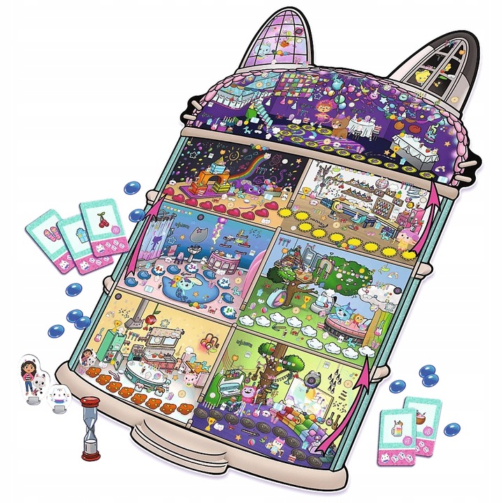 W każdej turze odkrywacie kartę, na której widnieje przedmiot do odnalezienia.Waszym celem jest jak najszybciej znaleźć go na planszy. Im więcej przedmiotów znajdziecie, tym szybciej Gabby i Panduś będą się poruszać po planszy w stronę Łakotka.